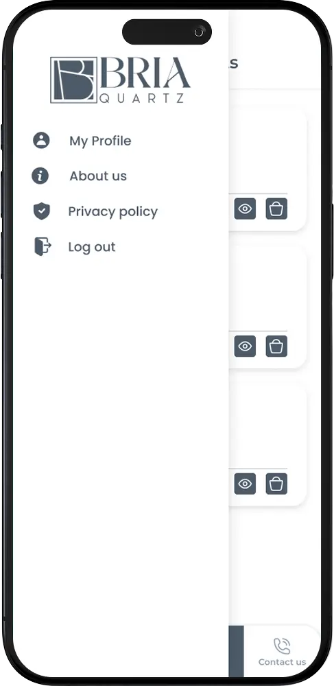 Bria Pattern Lab is a design-and-order app for premium stone waterjet patterns. Users pick an intricate pattern, swap natural-stone fills, preview the result, and submit an order for precision waterjet fabrication—ideal for floor and wall features in high-end interiors.