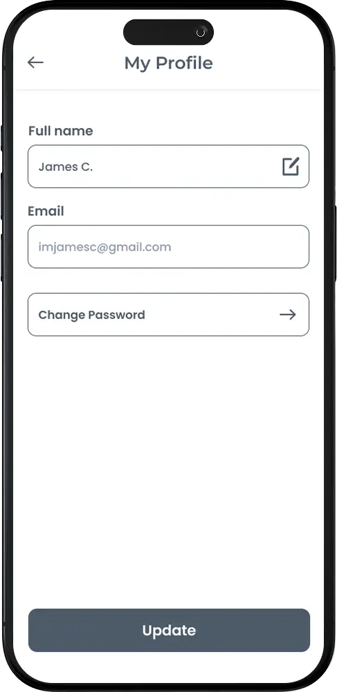 A clean, low-friction start: splash → sign up / sign in → password recovery → profile. The drawer menu keeps account actions one tap away, while profile and saved items make it easy to pick up where you left off.